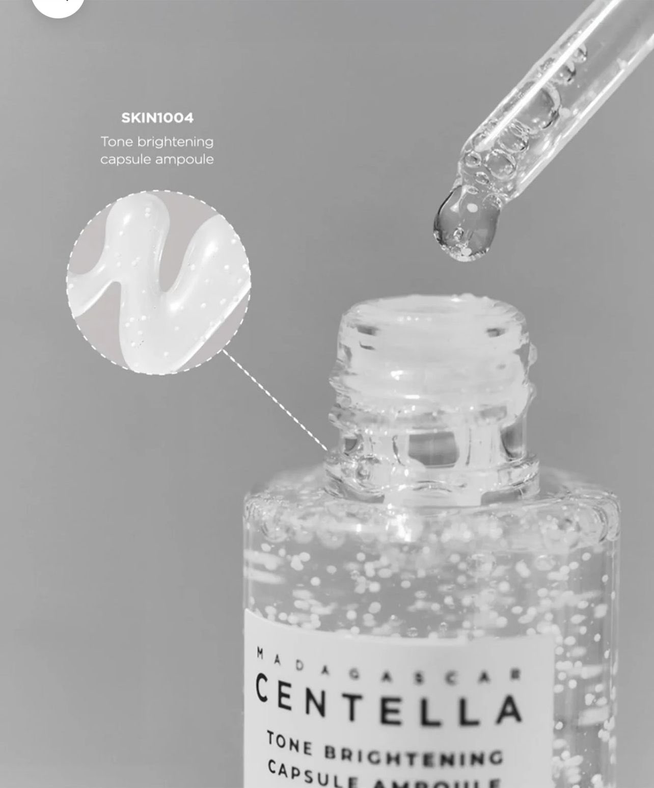 Tone Brightening Capsule Ampoule بتركيبته الطبيعية بالسينتيلا والمكونات 🌿، بيفتح البشرة، يووح لونها، ويمنحك نضارة وحيوية